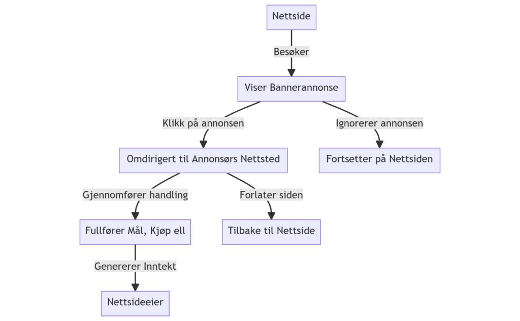 Når en bruker besøker en nettside som viser bannerannonser, blir annonsen lastet inn samtidig som nettsiden. Hvis annonsen fanger oppmerksomheten til brukeren, kan de klikke på den for å få mer informasjon eller utføre en ønsket handling, for eksempel å besøke nettstedet ditt eller kjøpe et produkt.